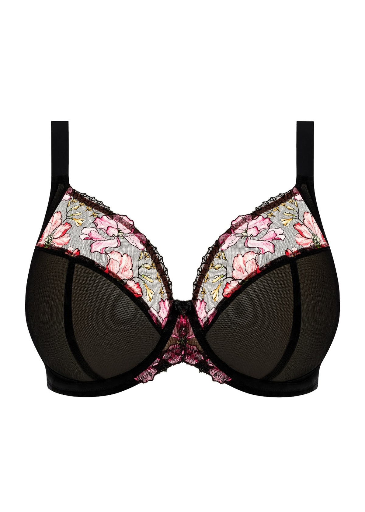 Elomi Teagan plunge-rinnahoidja – Rainbow on pilkupüüdev ja naiselik valik, inspireeritud Elomi armastatud Matilda plunge-mudelist. Särtsakas Rainbow toon toob esile päikeseloojangu varjundites kollased, roosad ja oranžid õied, mis on täpselt trükitud tikandina korvi ülaosas ja keskosas, lisades õrna metallniidist sära.